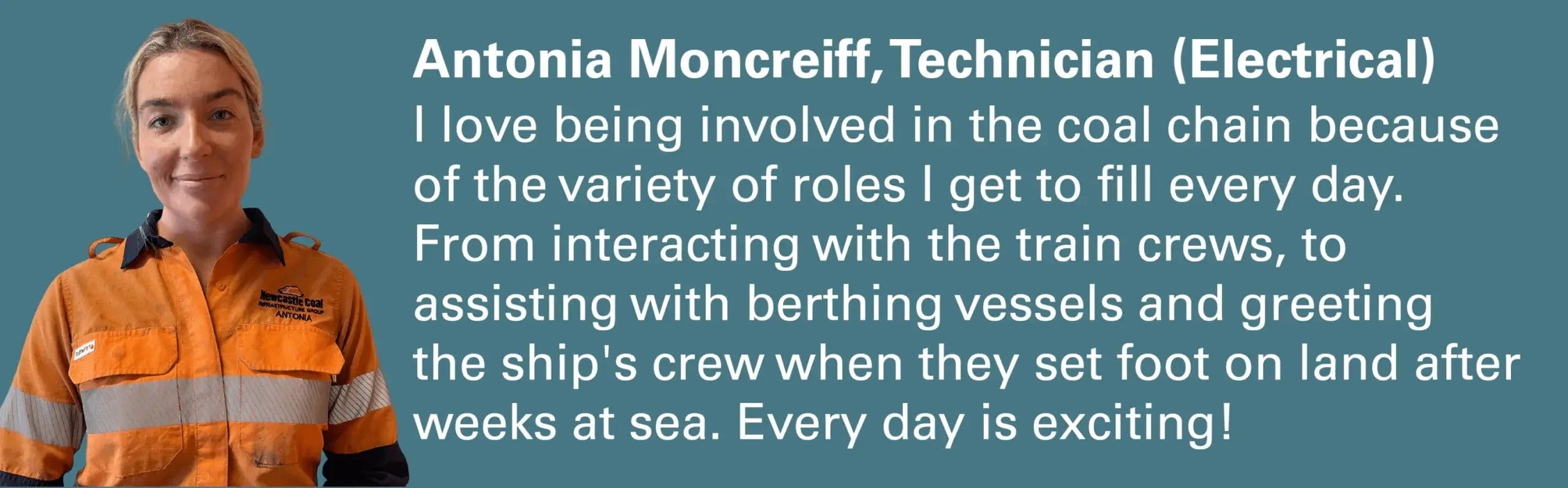 Newcastle Coal Infrastructure Group (NCIG) operates as a logistics business, providing benchmark export services to our customers and linking their products with international energy markets. We acknowledge our workforce’s gender imbalance openly and actively work to address it through various initiatives. This includes obtaining a five-year exemption from the Anti-Discrimination Board of NSW. This allows us to conduct targeted recruitment drives for trade and technical roles, with a focus on increasing representation of women in technical roles.