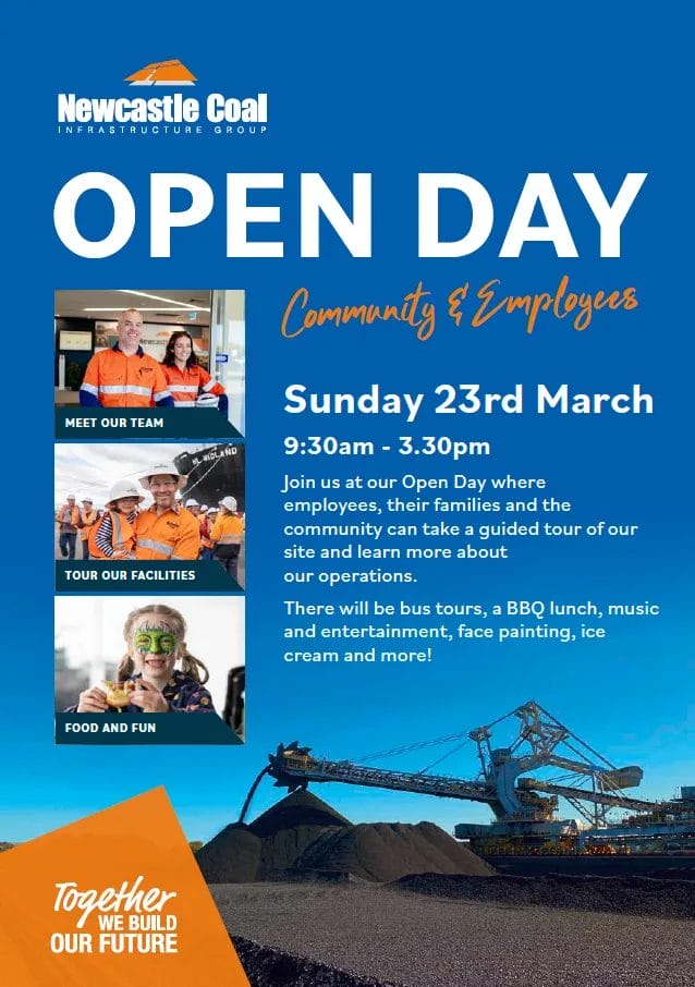 We are once again looking forward to welcoming the community to visit our Kooragang Island facility and learn more about our world-leading export terminal and operations. Our facility will be transformed into a hub of activity for the day with the opportunity to take a free site tour of our facility where you’ll see behind-the-scenes of our operations. We’ll also have some family-friendly entertainment, a BBQ lunch, icecream, and giveaways for the kids.