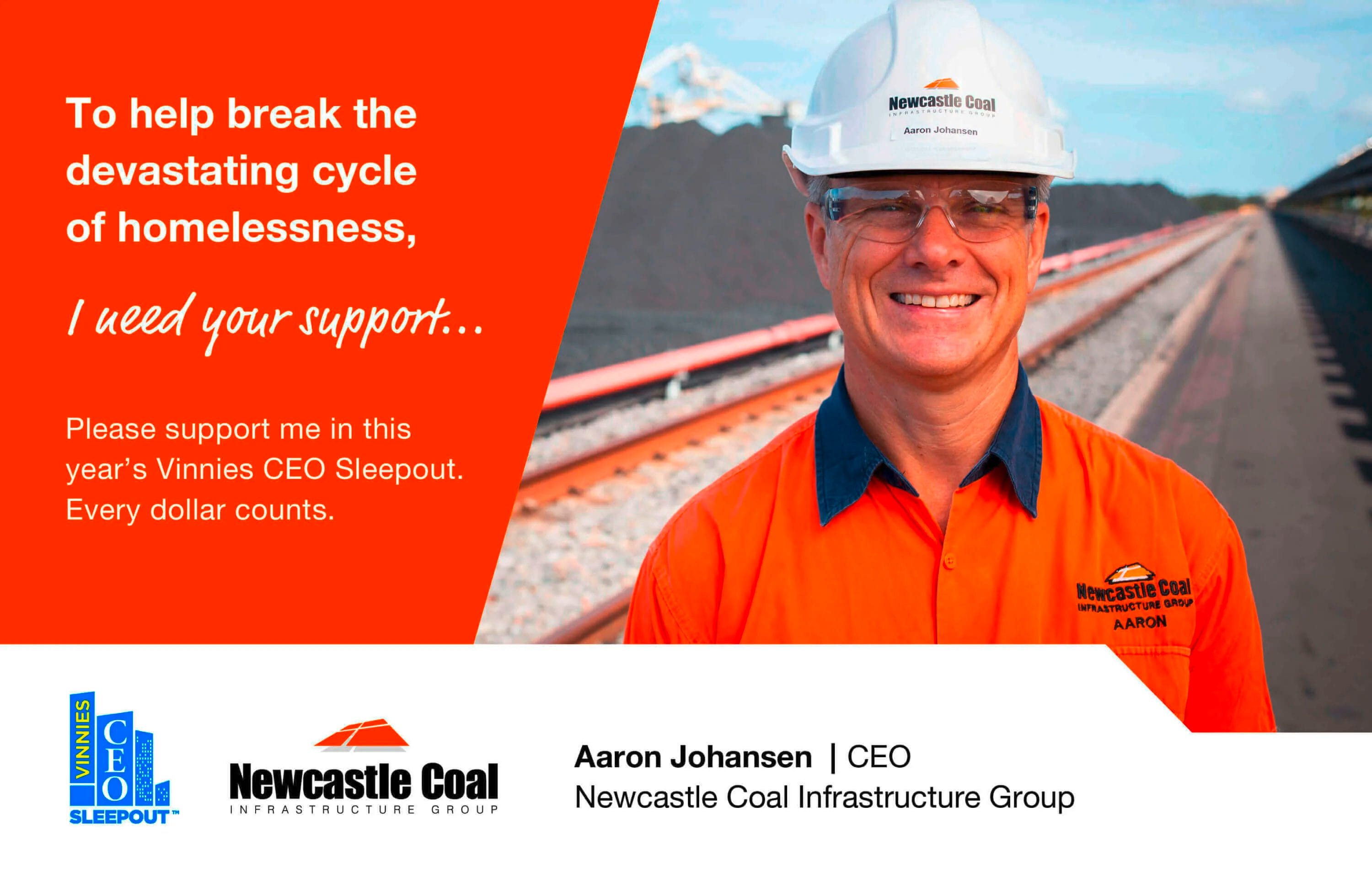 For one night, NCIG CEO Aaron Johansen will be sleeping on the freezing concrete within the tunnels of McDonald Jones Stadium as part of an eye-opening experience to raise awareness and bring home the realities of homelessness.